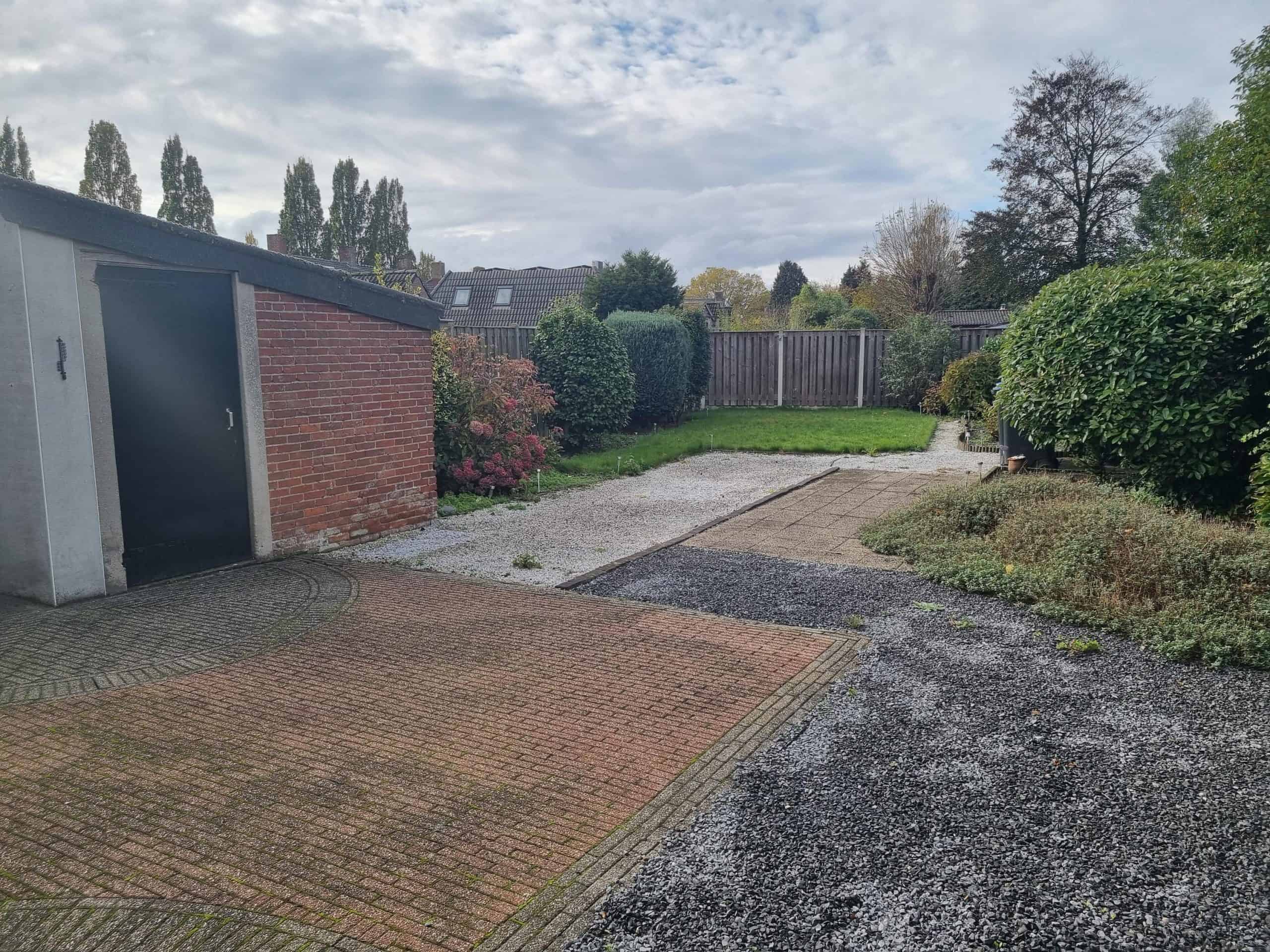Ruim perceel gelegen op het westen met eigen oprit. Het perceel biedt mogelijkheden tot uit- of aanbouwen van de woning; achtertuin met vrijstaande berging.